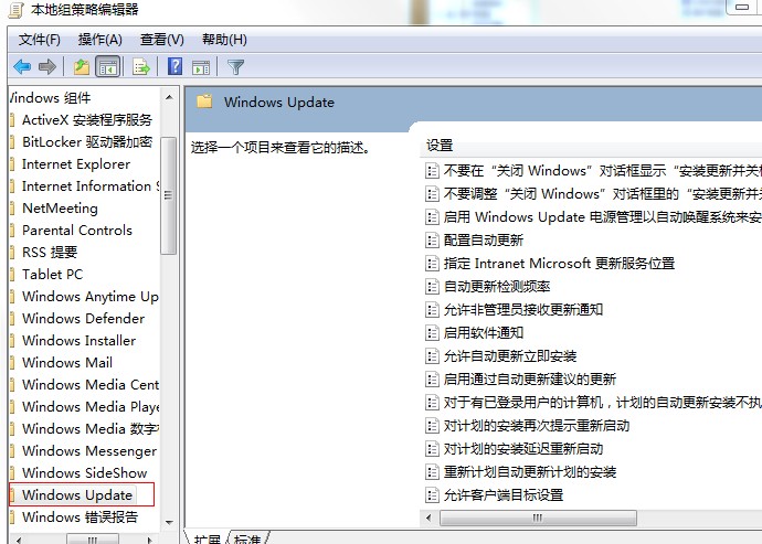 接下来,我们在本地组策略编辑器左边依次打开计算机配置-管理模板-Windows组件,双击打开Windows Update进行配置。