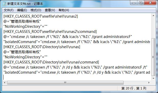 方法一:为Windows7的右键菜单添加取得所有权的菜单: