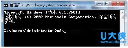 2、在打开的命令提示符窗口上,输入cd命令,并回车;