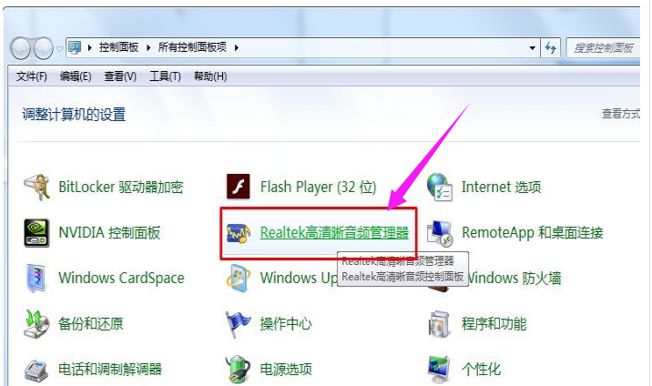 打开控制面板,然后选择高清音频管理器