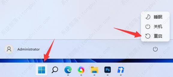 5、最后通过开始菜单来进行电脑重启既可解决问题。