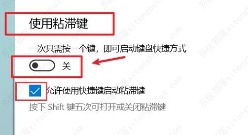 4、最后找到粘滞键,将他们关闭就可以退出快捷键模式了。