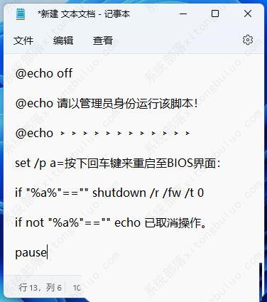 win11一键重启.bat代码怎么写?为了方便进入主板BIOS,我们可以在Win11系统桌面下制作个一键重启就自动进入BIOS的脚本,这篇文章是本站给大家带来的方法。