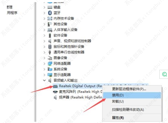 3、在里面找到Realtek digital output,驱动右击鼠标,点击禁用,然后再点击启用。
