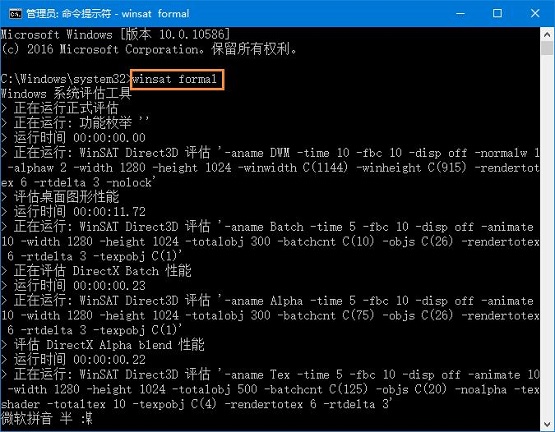 以管理员身份运行CMD,输入winsat formal后按回车键耐心等待测试完成