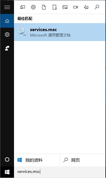 1、在W10系统点击“开始——搜索”,在搜索框中输入“services.msc”命令;