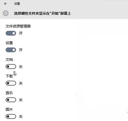 在开始菜单的左下角可以显示更多文件夹,包括下载、音乐、图片等,这些文件夹在Win7开始菜单中是默认显示的。Win10中需要在设置中打开,如图所示。