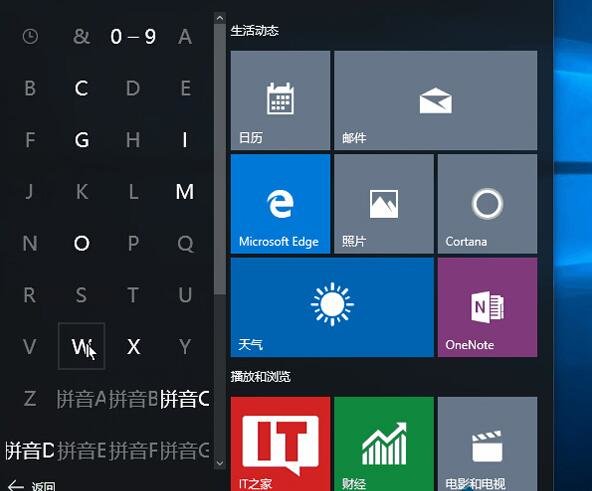 Win10所有应用列表提供了首字母索引功能,方便快速查找应用,当然,这需要你事先对应用的名称和所属文件夹有所了解。比如,在Win10中IE浏览器位于Windows附件之下,你可以通过图中所示操作找到IE11浏览器。除此之外,你还可以通过Cortana小娜搜索来快速查找应用。