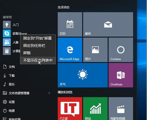 如果你不喜欢磁贴中显示内容,可以选择关闭动态磁贴,方法:右键单击磁贴—》选择“关闭动态磁贴”。