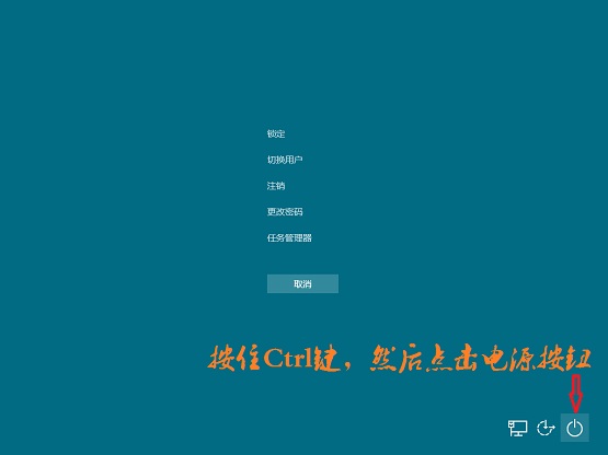 2、接着按住ctrl键,将光标移至电源按钮并点击鼠标左键进入紧急重启界面,如图所示: