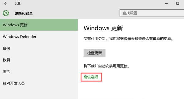 2、调出更新和安全的设置窗口后,我们点击windows更新下的高级选项,如图所示: