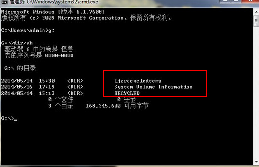 2、接着输入dir/ah命令查看是否有被隐藏的文件夹,如下图所示: