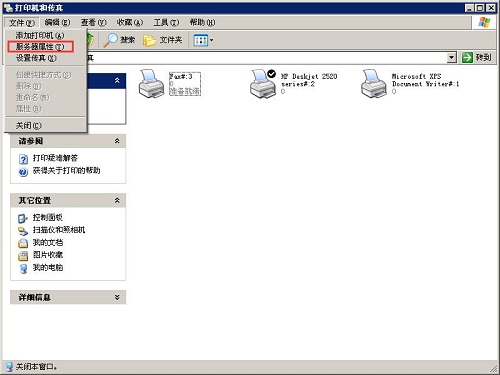 3、点击左上角“文件”下拉菜单,选择“服务器属性”。