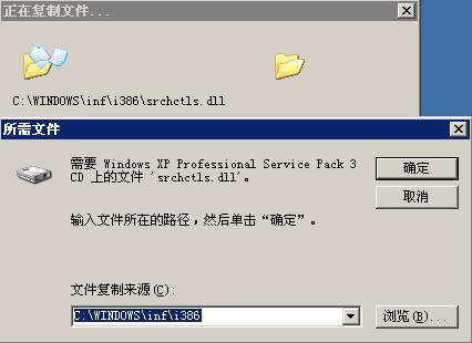 4、弹出需要插入XP安装盘的对话框,插入光盘(我是解压XP的安装包)后点击“浏览”按钮;