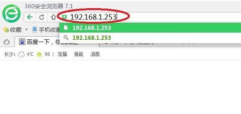 打开IE浏览器,在网址栏输入:192.168.1.253,按回车键。