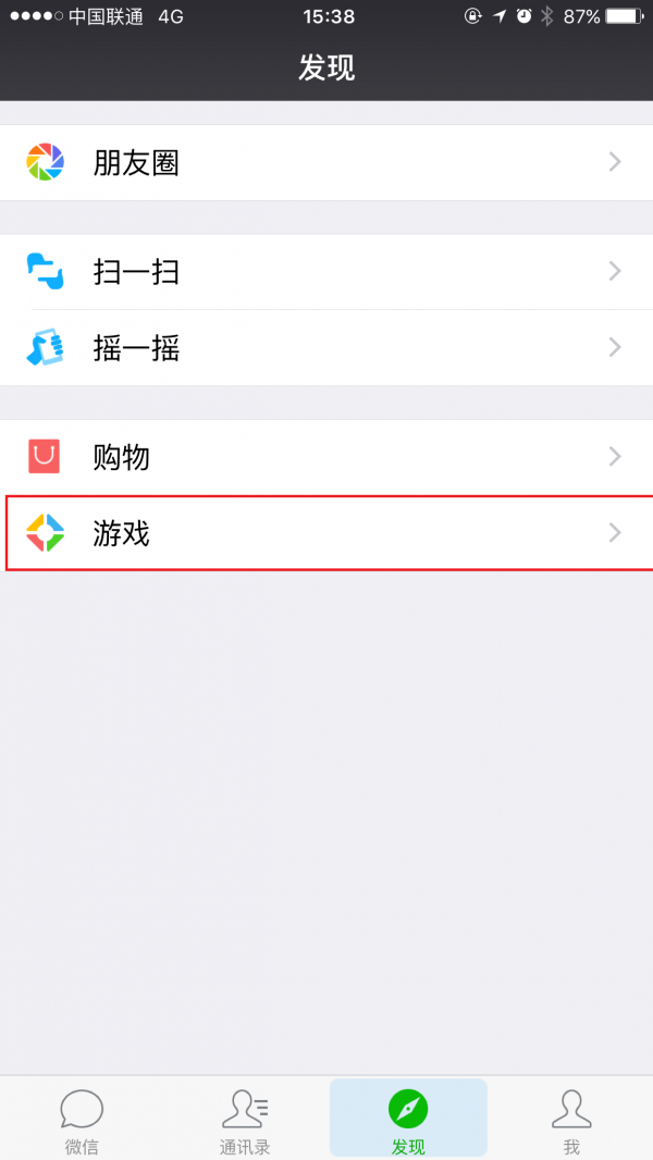 先说微信吧。打开手机微信软件,点击“发现”界面之后,我们会看到一个“游戏”选项,进入游戏之后再点击右上角就可以看到所有已经使用微信授权过的游戏了。