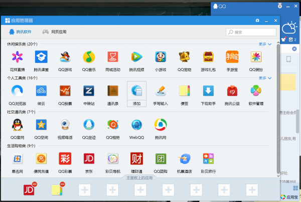 而QQ就要繁琐一些,主要是不能直接在手机端操作,需要PC上登录你的QQ,然后点击主面板右下方四方块图标的“应用管理器”,点击进入界面之后找到“QQ足迹”这个组件,将其添加到主面板下方或直接进入“QQ足迹”操作页面。