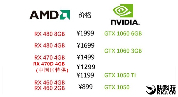 AMD RX 470D显卡今天正式上市,新品一是宣称转为中国定制(千元性价玩家和网吧市场,D代表Dragon龙),二是为火拼GTX 1050 Ti,两者建议零售价相差100元,但红色阵营既然后发,肯定是想借助性能制人。