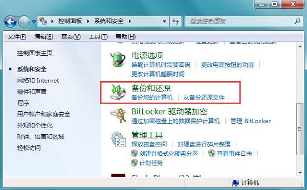4、重新启动电脑,打开备份和还原,即可进行备份。