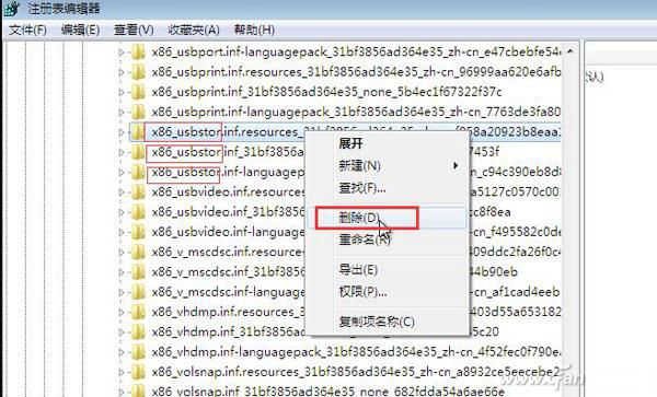 删除完毕后按“F3”进行再次搜索,重复上面的操作步骤,直到再也显示不出“x86_usbstor.”相应的结果即可。