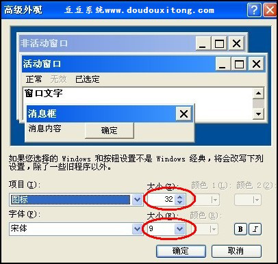 4、选择图标后面的大小和字体后面的大小,自己感觉舒适程度即可。
