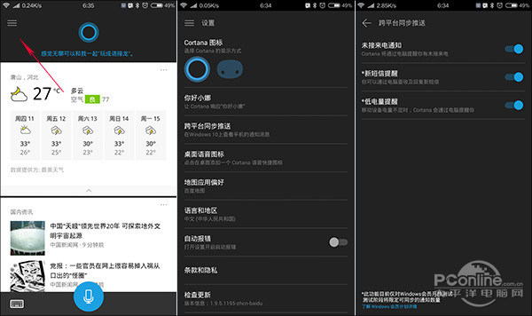 1小娜可以提醒手机没电/来短信? 在Win10周年版中,小娜Cortana开始向着更专业更智能化的方向发展,这其中就包含了很多与手机交互的新功能。到底都有什么呢?一起来看看吧。 想让小娜与手机互通信息,首先也要在手机上安装一款Cortana客户端。当然随着微软大战略的推进,这个客户端早已不限于WP平台,Android、Ios上均有对应版本可选。只要打开各自的应用商店,在里面搜索安装即可。此外还有一点需要注意的是,PC端和手机端均要登录同一组微软账户,做好了这些之后,就可以开始我们的小娜探秘之旅了! 1. 手机没电提醒 手机没有电,真的很误事,最要命的是你没法及时发现它。不过当你在手机上安装好小娜客户端后,就可以放心大胆地在电脑边工作了,Cortana会在手机电量不多时自动向电脑推送一条信息。同样的如果用户没时间查看,提醒也会收入通知列表。 2. 未读短信通知 除了手机电量外,未读短信也会被Cortana监测到。如果手机上有长时间没有读取的短信,小娜同样会将其发送给PC端显示。最厉害的是,你甚至可以在这个面板上直接回复这条短信,使用起来还是颇为方便的。不过默认情况下,小娜并没有将短信内容隐藏。因此如果使用者处于一个开放办公环境的话,多少会显得有些麻烦。当然你也可以借助手机端Cortana的“设置”→“跨平台同步通知”,将“新短信提醒”一项关闭。至少在微软没有添加新选项之前,这是唯一的解决方案。 3. 未读来电提醒 如果手机上出现未读来电,小娜也会及时发送提醒,操作方法和短信没啥两样。如果不需要,同样也可以进入手机端Cortana的“设置”→“跨平台同步通知”,将其关闭掉。 4. 网页定时提醒 网页定时提醒也是Cortana新增技能之一,比方说想让小娜提醒你X点X点观看直播,使用它就很方便了。需要时只要点击Edge浏览器的共享按钮,在弹出面板中选择“Cortana提醒”,再按提示完成添加即可。到时间后,Win10会在任务栏右下角自动弹出提醒,通过提醒面板可以直接打开页面链接。