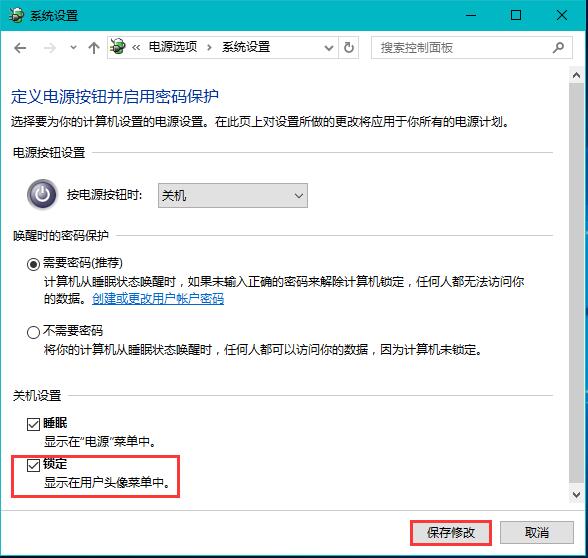 4、在【关机设置】下面勾选“锁定”,点击“保存修改”即可;