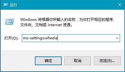 2、在运行对话框中输入命令,就可以直接打开Windows设置的功能页,如我们输入:ms-settings:wheel命令,点击确定或者回车;