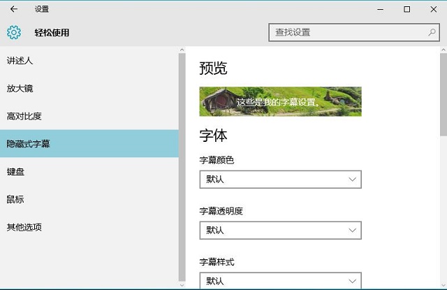 7、ms-settings:easeofaccess-closedcaptioning命令,可以打开轻松使用功能中的隐藏式字幕窗口;