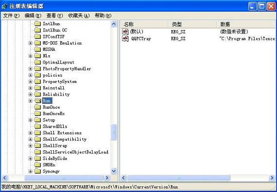 2、进入注册表定位到以下注册项【HKEY_LOCAL_MACHINESOFTWAREMicrosoftWindowsCurrentVersionRun】。