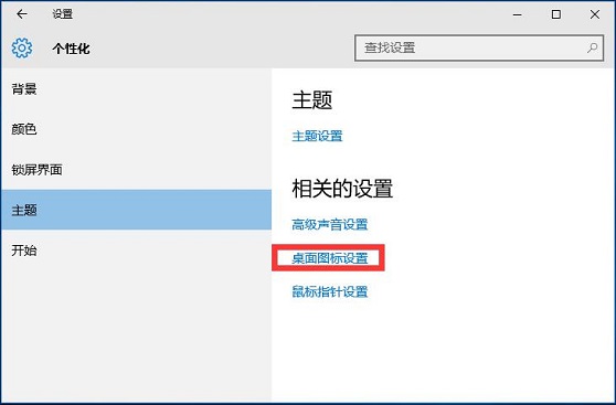 2、在设置界面左侧点击【主题】,点击右侧的【桌面图标设置】;