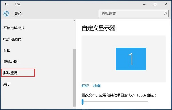 3、在系统选项列表中选中“默认应用”;