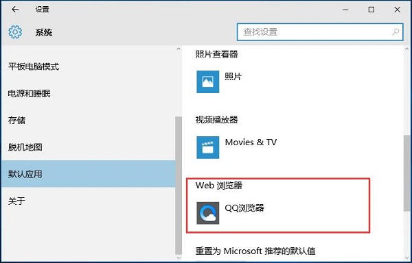 4、找到WEB浏览器,然后在浏览器中选择你需要的浏览器。