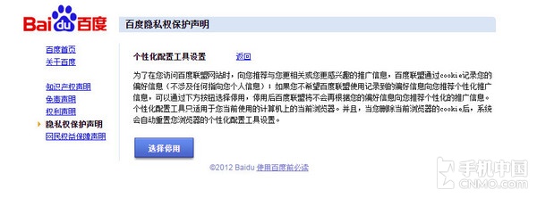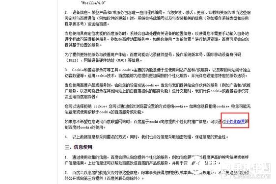 要屏蔽广告其实不难,在百度搜索主页下方,找到“使用百度前必读”一项并点击进入,接着选择页面左侧的“隐私权保护声明”,在页面中下拉找到“个性化配置”,这几个字并不明显,请仔细寻找。最后,选择停用“个性化配置工具”就大功告成了。