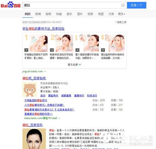 接着再来看看疗效,依旧输入关键字“瘦脸”,页面跟刚才完全不同,清净多了效果不错。