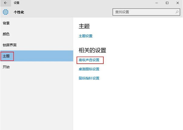 3、在主题设置界面中,点击相关设置下方的“高级声音设置”,如下图所示: