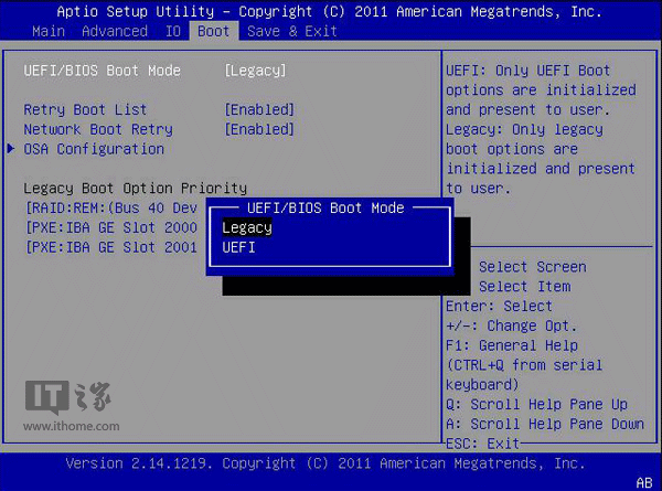 IT之家提示:开机后按下ESC或者当前电脑默认的按键即可进入启动方式选择界面,也可进入BIOS单独设置(热键一般为Del、F2等),具体情况需要根据电脑预设来定,但操作方式大同小异。UEFI启动需要主板芯片组支持,如果你在BIOS设定中没有找到相应内容,那么很可能就是你的主板没有此功能。