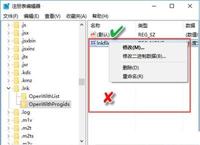 6、然后点击openwithprogids,在右边中看看除了“默认”这个外,有没有其他的,有的话也全部删除。
