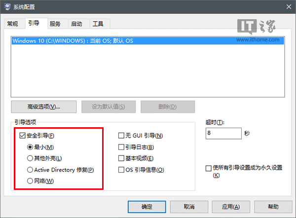 “安全模式”是Windows系统用来排查故障的有力武器,因为很多电脑故障就是由于第三方驱动或者软件引发。在“安全模式”中,系统仅加载最基本的驱动和服务,所以一般情况下不会有问题。在此模式下,可以逐渐开启你认为有问题的软件,以便排查问题所在;或者可以执行一些安全操作,比如查毒杀毒等任务。想要进入该模式,和Win7/Win8.1差不多,在正常启动情况下,按Win(Windows徽标)+R键组合打开“运行”,然后执行msconfig(输入后按回车键),在“系统配置”中选中“安全引导”后,再根据你在安全模式下的任务类型选择需要开启的服务。比如你需要联网,那么就选最后一个“网络”,不需要这些就可以直接使用默认的“最小”,然后点击“确定”后重启电脑即可。