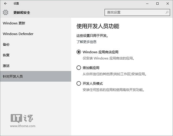 59、Win10“设置”中“针对开发人员”选项有什么用?