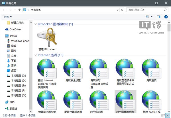 所谓的“上帝模式”实际上就是全部Win10设置项目的大合集“所有任务”,想要进入这个“系统中枢”得有“专属口令”才能放行。这个神秘的口令就是下面这一行语句: