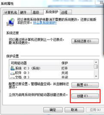 3、检查是否没有设置还原点的原因,如果是的话,点击创建即可。