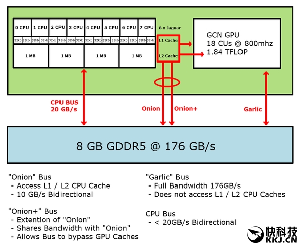 这款APU将延续Carrizo APU上的完全内存一致性互连总线“Onion3”,并进行增强,总带宽超过50GB/s。微软Xbox One和索尼PS4里的互连总线和这个也类似,只不过没这么先进。