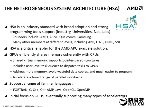 AMD APU融合处理器这两年已经十分成熟,但却没什么明显的进步,无论CPU/GPU架构还是整体结构基本都是老样子,只是把HSA(异构系统架构)做得更纯熟了。