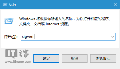 1、在运行中输入“sigverif”后按回车键打开该工具,如下图——