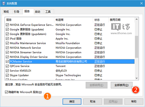 既然如此,可以尝试关闭某些第三方服务的启动项。如果你有比较确定的怀疑对象,那么可以直接关了这些程序和服务,看是否解决问题。否则的话就需要干净启动逐项排除,方法就是在正常启动的模式下,将非Microsoft服务全部禁用,然后在“启动”中把非Microsoft程序全部禁用。重启后逐项开启第三方服务,直到该问题再次出现,就可以确定问题服务和程序所在。