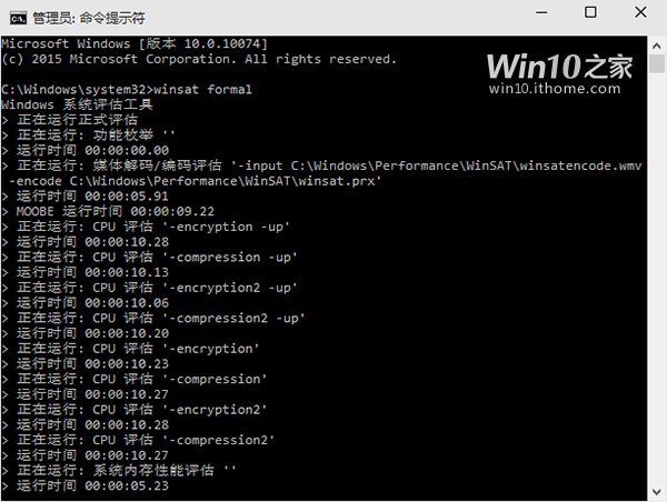 完成后,在提示符窗口内会给出一些具体评测结果,而在传统《游戏》中就会出现一个总分。可以看出,如今Win10中的“体验指数”操作已经非常麻烦了,也就是说微软根本没打算让普通用户使用。微软认为该功能已经没有存在的必要,很多第三方软件也能完成。