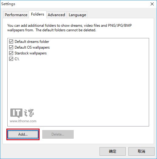 3、激活软件后,你会发现该软件已经提供了一些壁纸,但这不是我们今天介绍的重点。这款软件可以使用专用的动态壁纸,比如“英雄”主题,你可以在文末下载链接处下载该动态壁纸。成功下载后,你要首先告诉软件动态壁纸文件位置,在软件右上角点击齿轮图标,在弹出的“设置”窗口中选择Folders选项卡,点击“Add”按钮添加刚刚下载的动态壁纸所在位置(如上图)。然后就可以在软件左侧壁纸列表最后看到自己加入的动态壁纸。