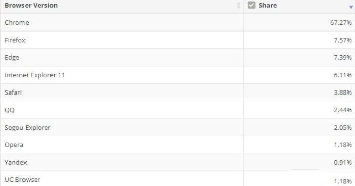 根据NetMarketShare提供的2月份数据,Microsoft Edge即将成为世界第二大浏览器,而Firefox的市场份额在过去几周大幅下降。2月份,Chrome的市场份额从66.93%跃升至67.27%。另一方面,Firefox从8.12%下降到7.57%。Microsoft Edge的市场份额从7.02%增加到7.39%。