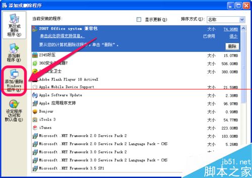 1、打开【开始】/【控制面板】,【添加/删除程序】